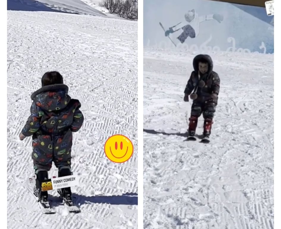ეს წლისა და 10 თვის გაბრიელ გულედანია, რომელიც დღეს პირველად შედგა თხილამურებზე და ასე დამაჯერებლად დაეშვა - რა თქმა უნდა, უფროსების მეთვალყურეობის ქვეშ და ქვემოთაც ელოდნენ. როგორც გაბრიელის დედა,
