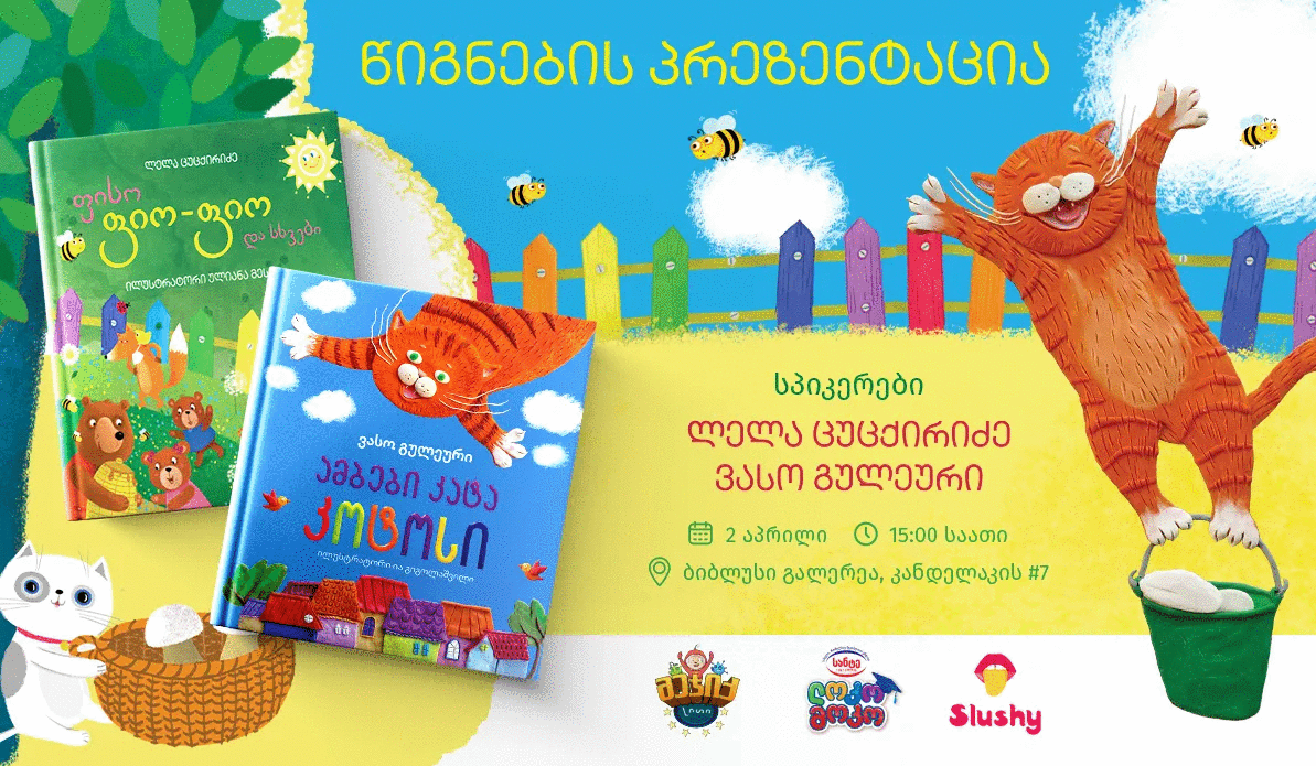 ვებგვერდზე და "ბიბლუსის" მაღაზიათა ქსელში 1-დან 8 აპრილამდე გაგრძელდება. კვირეულის ფარგლებში, "ბიბლუსი გალერეის" გაგარინის ფილიალში ეწყობა საბავშვო ავტორების ლელა ცუცქირიძისა და ვასო გულეურის წიგნების წარდგენა.
