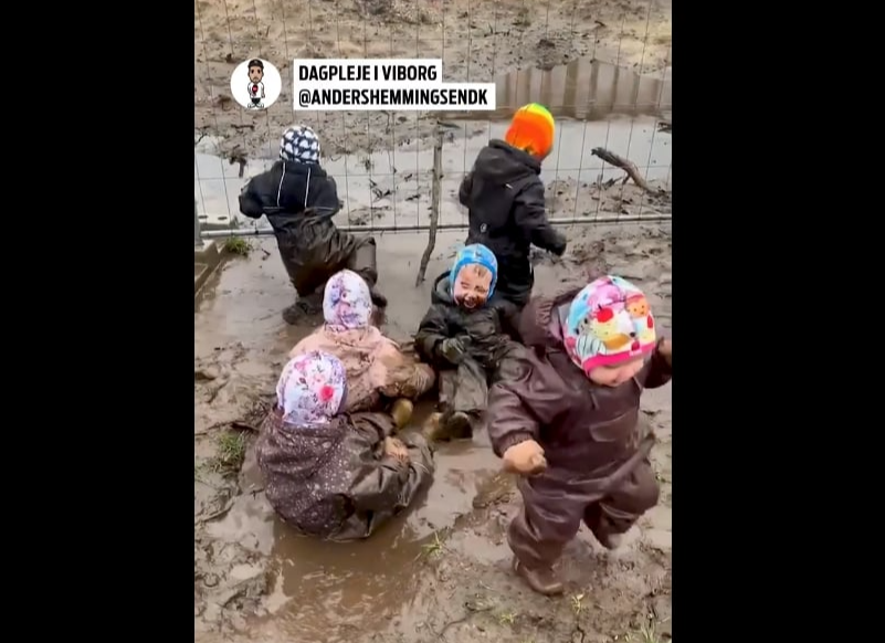 ამ დღეებში სოციალურ ქსელში უამრავმა ადამიანმა გააზიარა ვიდეო, სადაც ჩანს, როგორ გორაობენ ტალახში საბავშვო ბაღის აღსაზრდელები დანიის ერთ-ერთ ქალაქშუ და რა ბედნიერები არიან ამ თამაშით.