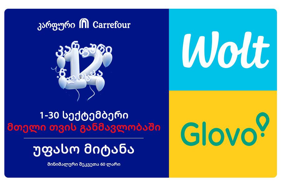 ეს ყველაფერი არ არის, აღნიშნულ პერიოდში ორივე აპლიკაციის - Glovo-სა და Wolt –ის ყოველი ახალი მომხმარებელი მიიღებს 10 ლარიან ფასდაკლებას კარფურის პირველ გამოძახებაზე, მინიმუმ 60 ლარიან შენაძენზე, სპეციალური პრომო კოდის გამოყენებით (Glovo-ს პრომო კოდი– CRF10 და Wolt-ის პრომო კოდი - WOLTCRFNEW).