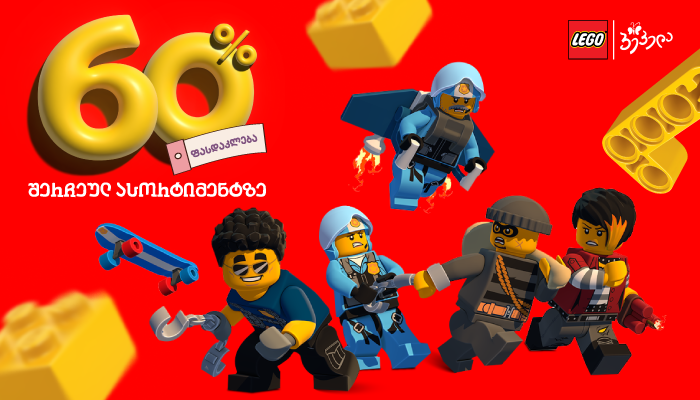 სათამაშოების მაღაზიათა ქსელი „პეპელა“, „ლეგოს“ შერჩეულ კოლექციაზე, უპრეცედენტო 60%-იან ფასდაკლებას გთავაზობთ. შეთავაზება 30 მარტამდე გაგრძელდება.