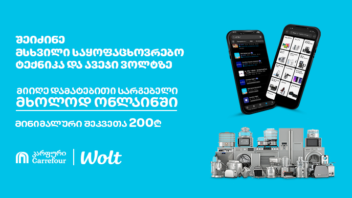 „Wolt“-ის პლატფორმაზე ონლაინ მაღაზიები სახელით: „Carrefour Technics-Furniture East Point” და „Carrefour Technics-Furniture Dighomi” უკვე ხელიმისაწვდომია და მომხმარებლებს შეუძლიათ, საუკეთესო ფასად, შეიძინონ მსხვილი ტექნიკა როგორიცაა: ტელევიზორი, მაცივარი, ტანსაცმლისა და ჭურჭლის სარეცხი მანქანები, გაზქურა, კონდიციონერი გამათბობელი და ა.შ.