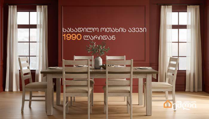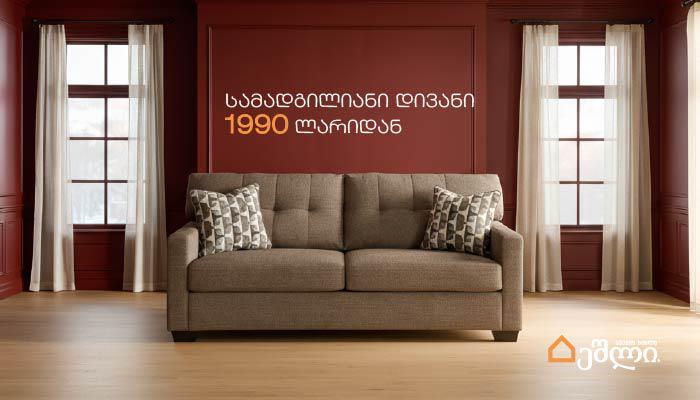 აქციის ფარგლებში 690 ლარიდან შეგიძლიათ შეიძინოთ უმაღლესი ხარისხის მასალებისგან დამზადებულისავარძელი მექანიზმით; ასევე,3-ადგილიანი დივანი- 1990 ლარიდან;საწოლი სათავსოთი1590 ლარიდან,სასადილო მაგიდა 6 სკამით1990 ლარიდან
