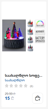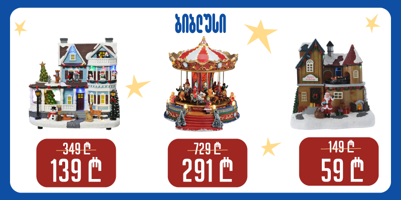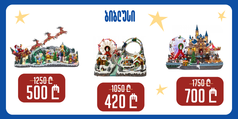 ახლა სწორედ ის დროა, როცა შეგიძლიათ 60%-იანი დანაზოგით შეიძინოთ ისეთი ნივთები, რომლებიც ნებისმიერი ადამიანის ჯადოსნური ოცნებაა. წარმოიდგინეთ ზღაპრულისაშობაოსოფელი,მოციმციმეკარუსელიან დახვეწილი საახალწლო დეკორაციები, რომლებიც თქვენს სახლს განსაკუთრებულ სიმყუდროვეს შესძენს. ეს ყველაფერი ახლა ხელმისაწვდომია საუკეთესო ფასად.