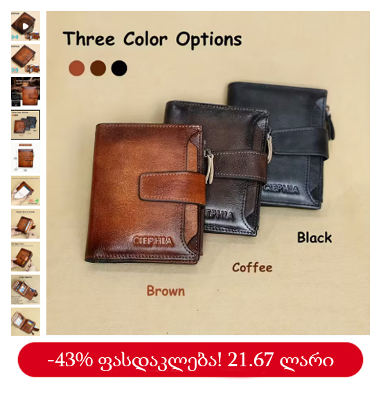 კაცის ტყავის საფულე კლასიკური და დახვეწილი საჩუქარია, რომელიც ხაზს უსვამს მამაკაცის სტილსა და სტატუსს. პრაქტიკული დიზაინი მრავალრიცხოვანი განყოფილებებით ბარათებისა თუ ნაღდი ფულისთვის, ამ აქსესუარს ყოველდღიურობაში შეუცვლელ ნივთად აქცევს. ეს არის საჩუქარი, რომელიც წლების განმავლობაში ინარჩუნებს პირვანდელ სახეს და ყოველ გამოყენებაზე თქვენს ზრუნვას ახსენებს მას.