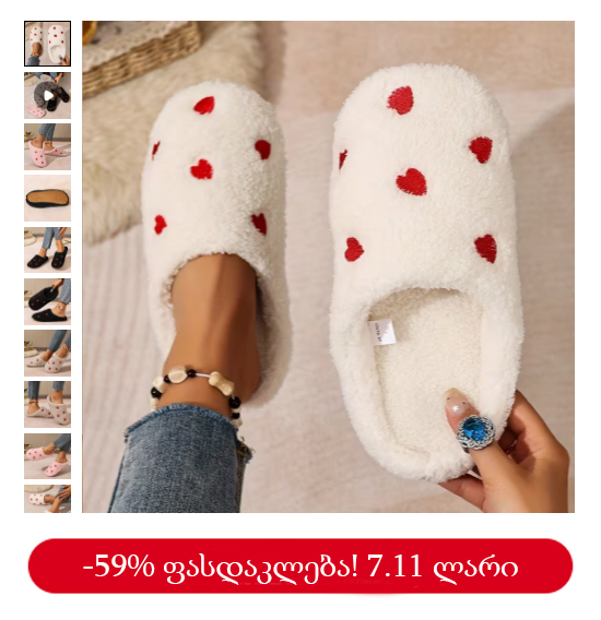 თბილი და ფუმფულა სახლის ჩუსტები გულების პრინტით ერთ-ერთი ყველაზე მყუდრო საჩუქარია, რომელიც ქალს განსაკუთრებულ ზრუნვასა და სითბოს აგრძნობინებს. ზამთრის ცივ დღეებში სახლში დაბრუნებულს, ეს რბილი აქსესუარი არა მხოლოდ ფიზიკურ კომფორტს ანიჭებს, არამედ ემოციურ სიმშვიდესა და დასვენების განწყობასაც უქმნის.