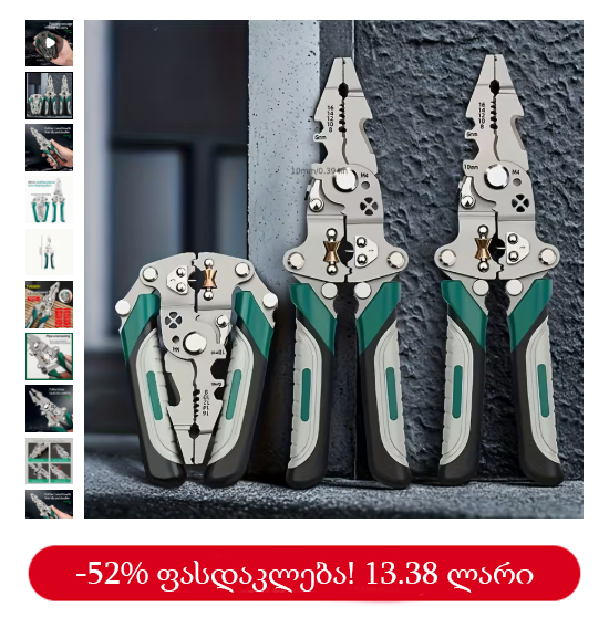 მრავალფუნქციური მულტიხელსაწყო იდეალური საჩუქარია მამაკაცისთვის, რომელიც აფასებს ხარისხიან ინსტრუმენტებსა და პრაქტიკულობას. მისი კომპაქტური, დასაკეცი დიზაინი და ერგონომიული სახელური ერთ მოწყობილობაში აერთიანებს კაბელის გაშიშვლების, დაჭრისა და დაპრესვის ფუნქციებს, რაც ნებისმიერ ელექტრო თუ სანტექნიკურ სამუშაოს ბევრად მარტივს ხდის. ასეთი საჩუქარი არა მხოლოდ ფუნქციური შენაძენია, არამედ თქვენი მხრიდან მისი ინტერესებისა და უნარების დაფასების სიმბოლოც.