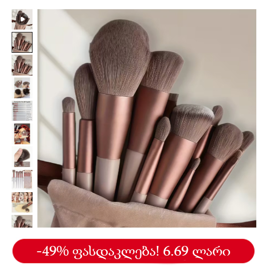 მაკიაჟის ფუნჯების ნაკრები საუკეთესო საჩუქარია ქალისთვის, რომელიც თავის მოვლასა და სილამაზის რიტუალებს დიდ დროს უთმობს. ხარისხიანი ნაკრები მაკიაჟის დატანის პროცესს ბევრად უფრო მარტივსა და სასიამოვნოს ხდის, რაც პროფესიონალური შედეგის მიღწევის გარანტიაა სახლის პირობებშიც კი. ეს არის პრაქტიკული და დახვეწილი ჟესტი, რომელიც ყოველდღიურად შეახსენებს მას თქვენს ზრუნვას, ხოლო რბილი და ნაზი ჯაგრისები ნებისმიერი ტიპის კანს განსაკუთრებულ კომფორტს ანიჭებს.