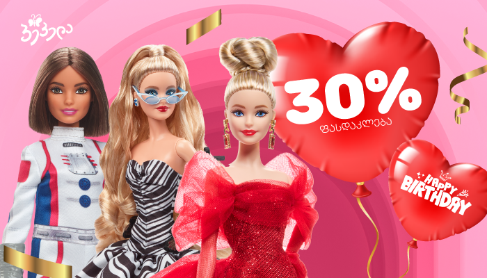 9 მარტს, „ბარბის“ დაბადების დღეზე „პეპელაში“ ბრენდის სრულ ასორტიმენტზე 30%-იანი ფასდაკლება გელოდებათ