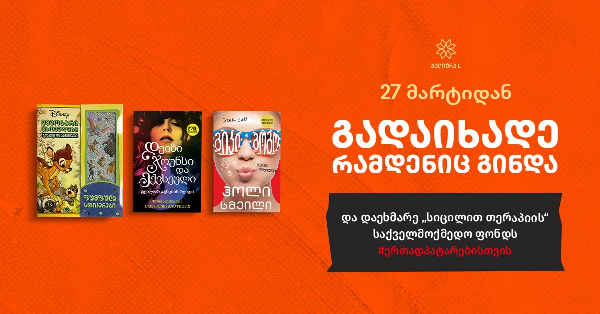 წიგნები, რომელთა შეძენასაც „პალიტრა L-ის“ საქველმოქმედო პროექტის ფარგლებში თქვენთვის სამართლიან ფასად შეიძენთ #ერთადპატარებისთვის